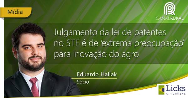 Eduardo Hallak, partner at Licks Attorneys, was interviewed on Canal Rural's ‘Direto ao Ponto’ program on Sunday (11). The topic was the Supreme Court’s (STF) hearing on the constitutionality of the Sole Paragraph of Article 40 of the Brazilian Property Statute. “The special rule [of the Sole Paragraph] has nothing to do with extending the patent term, that is, you will not gain an additional term after the patent has already been granted. It is a compensatory rule,” said Eduardo. To read the full story and watch the program, visit: https://www.canalrural.com.br/programas/informacao/direto-ao-ponto/lei-patentes-stf-inovacao/