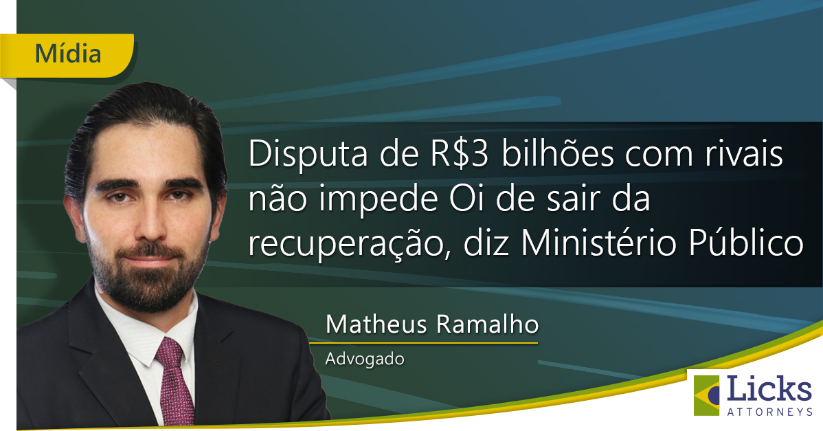 Matheus Ramalho, advogado, foi entrevistado para a reportagem “Disputa de 3 bilhões com rivais não impede ‘Oi’ de sair da recuperação, diz ministério público”, do site Tele Síntese. O texto trata da disputa em torno da recuperação judicial da Oi, e Matheus analisa os interesses das partes envolvidas. Leia na íntegra: https://lnkd.in/dUyUX8gf