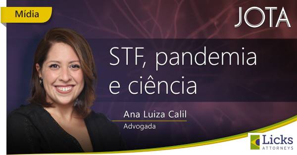 Ana Luiza Calil, attorney at law, is the co-author of the article “Brazilian Supreme Court, pandemic, and science”, published by JOTA. The article aims to analyze the Brazilian Supreme Court decisions related to the pandemic, in which scientific evidence was used as a ruling parameter. Full text in Portuguese is available at: https://bit.ly/3kEwot6