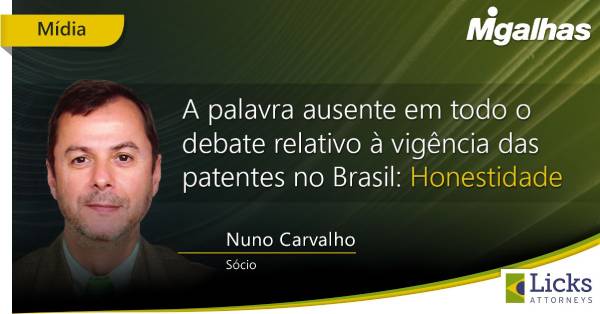 Nuno Carvalho, a partner at Licks Attorneys, had the article "The word absent throughout the debate regarding the validity of patents in Brazil: honesty" published in Migalhas. In the text, Nuno argues that the discussion about the term of patents in Brazil – the subject of ADI 5529, which the Supreme Court judges on April 7 – must be considered from the historical perspective of the international treaties and agreements to which the country is a signatory. Read the full article at https://www.migalhas.com.br/depeso/342594/a-palavra-ausente-em-todo-o-debate-relativo-a-vigencia-das-patentes