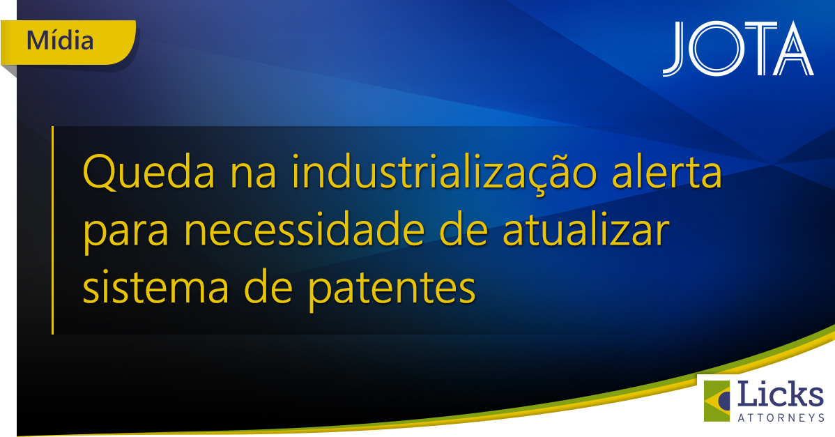 “JOTA” website has published the article “Drop in industrialization signals the need to update the patent system”, based on the webinar “The Development of the Brazilian Patent Granting System”, held in partnership between the website and Licks Attorneys.