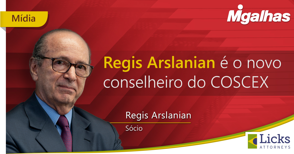Ex-embaixador e sócio do escritório Licks Attorneys, Regis Arslanian foi designado conselheiro do Conselho Superior de Comércio Exterior (COSCEX) pelo presidente da FIESP, Josué Gomes.