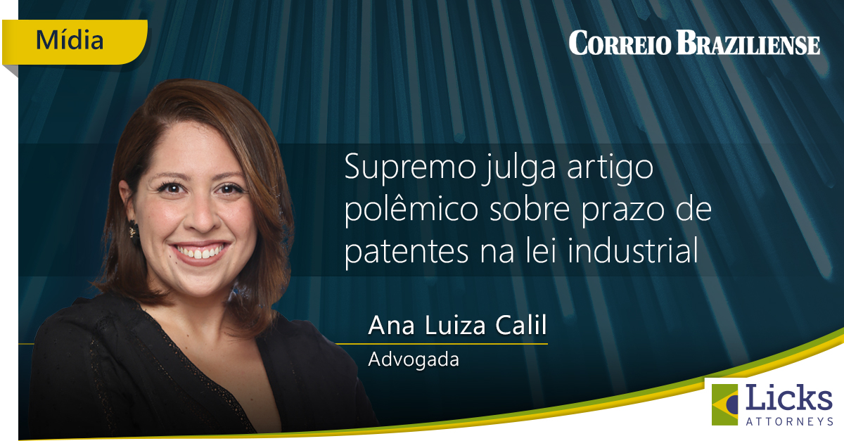 Today Correio Braziliense published the article “Supreme judges controversial article on patent term in industrial law.” The article addresses the Brazilian Supreme Court’s (STF) hearing on a Direct Action of Unconstitutionality (ADI 5529) referring to Article 40 of the Brazilian Patent Statute. Find out more at https://bit.ly/3rXS8Af
