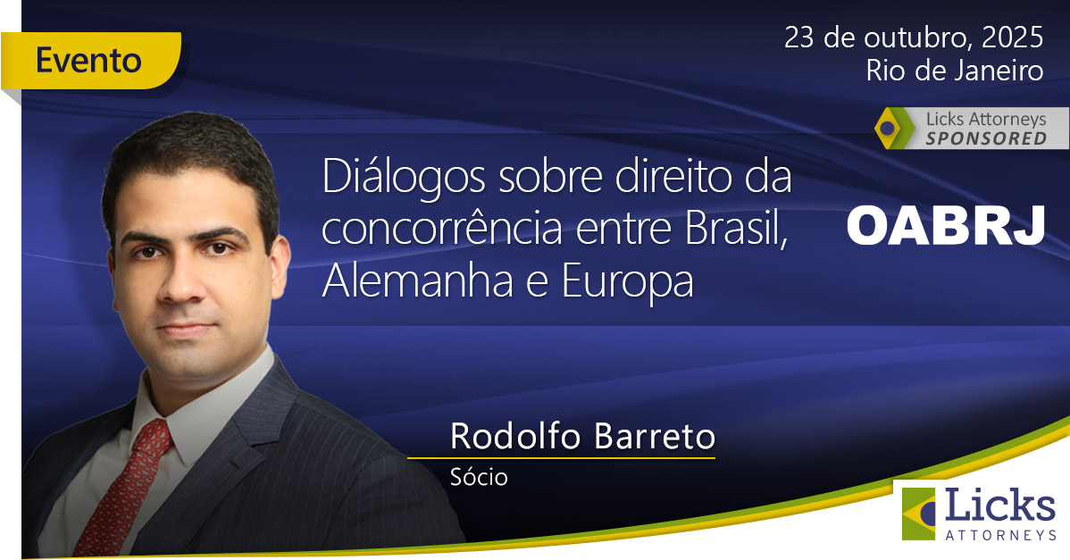 Rodolfo Barreto, partner, will join the event “Dialogues on Competition Law between Brazil, Germany, and Europe,” hosted by the Brazil-Germany Commission in partnership with the Competition Law Commission, both of the Rio de Janeiro Bar Association (OAB/RJ). The meeting, scheduled on October 23, will bring together leading experts and authorities to discuss current challenges and future prospects of antitrust policy across different jurisdictions. The program will cover topics such as international cooperation, anticompetitive practices, damages claims, and regulatory impacts on innovation and competitiveness. Read more: https://oabrj.org.br/eventos/direito-concorrencia-dialogos-entre-brasil-alemanha-europa