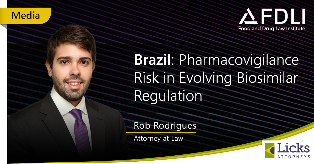 Rob Rodrigues, attorney at law, had his article “Brazil: Pharmacovigilance Risk in Evolving Biosimilar Regulation” published on the FDLI – Food and Drug Law Institute website. Read it in full at: http://static.lickslegal.com/pdf/FDLI%20-%20Brazil_Pharmacovigilance_Risk_in_Evolvin%202015.pdf