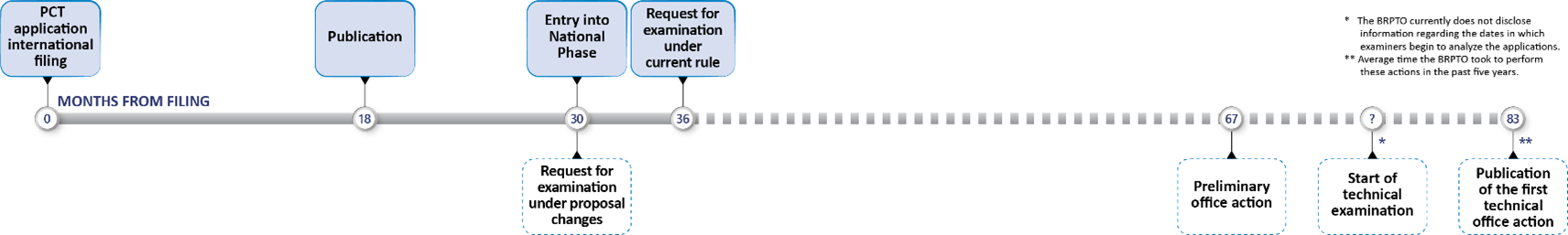 The Patent Office’s goal with the proposed change is to substantially reduce the backlog and examination pendency. Accordingly, the BRPTO is trying to hit a target of deciding cases within 24 months from filing “on par with the best international practices and will benefit its users”. The BRPTO believes that the current rule (36 months to request examination) is one of the reasons for additional delays in the granting of patents and proposes that the request for examination be automatic for a PCT patent application when entering the national phase in Brazil, 30 months after its international filing.