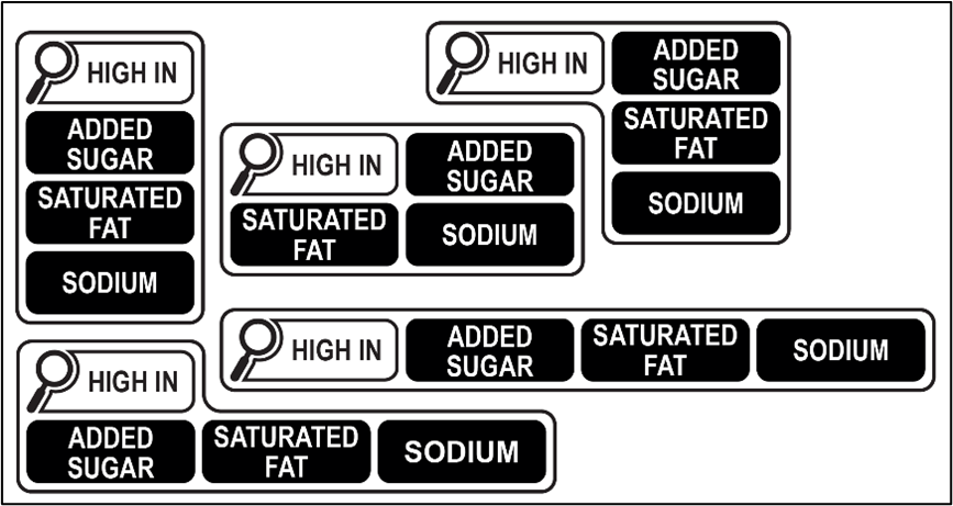 a) Front-of-Pack Warning Labels: Food products that have high quantities of specific critical nutrients, such as sugars, sodium, and saturated fats, must prominently display a front-of-pack warning label. These labels are designed with distinctive symbols and wording, delivering a clear message about the nutrient content.