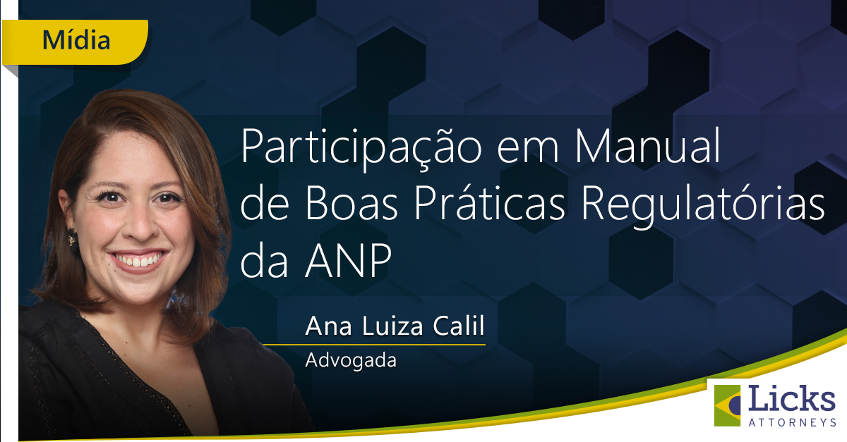 Ana Luiza Calil, attorney at law, is one of the co-authors of the "Good Regulatory Practices Guidelines” released by the Brazilian National Agency for Petroleum, Natural Gas and Biofuels" in December 2020. Ana participated as a researcher from the Regulation Lab of Rio de Janeiro State University. The document is part of the Agency's regulatory improvement project and is available at: https://bit.ly/3sa6e2K