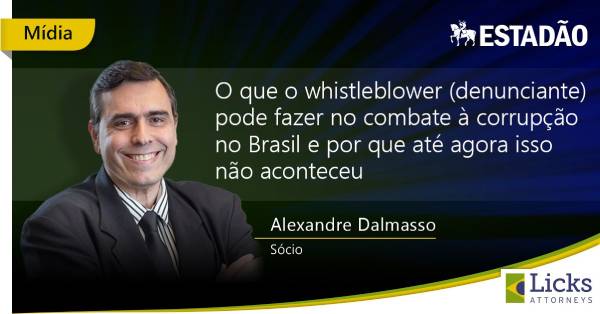 Alexandre Dalmasso, a partner at Licks Attorneys, had an article published in the “Blog do Fausto” on the Estadão website about the role of whistleblowers in the fight against corruption in Brazil. To learn more about this topic, please visit https://politica.estadao.com.br/blogs/fausto-macedo/o-que-o-whistleblower-denunciante-pode-fazer-no-combate-a-corrupcao-no-brasil-e-por-que-ate-agora-isso-nao-aconteceu/