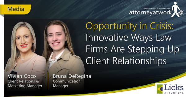 Vivian Coco, Head of Legal Marketing, and Bruna De Regina DeRegina, Communications Manager, were invited by Jennifer Carr to participate in the article “Opportunity in Crisis: Innovative Ways Law Firms Are Stepping Up Client Relationships.” The article informs legal marketing professionals about what law firms have done to educate their clients and build relationships during the pandemic. Click here to read the full article https://www.attorneyatwork.com/law-firm-client-development-opportunity-in-crisis-law-firm-innovation/
