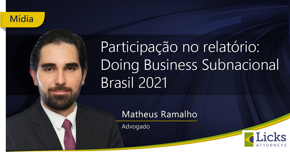 Matheus Ramalho, attorney at law, was one of the World Bank's collaborators in the report “Subnational Doing Business Brazil 2021”, prepared at the request of the General Secretariat of the Presidency of the Republic. Matheus was one of those selected to contribute to the chapter on the role of the Courts in managing commercial disputes.