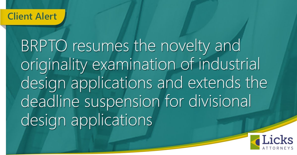 BRPTO resumes the novelty and originality examination of industrial design applications and extends the deadline suspension for divisional design applications