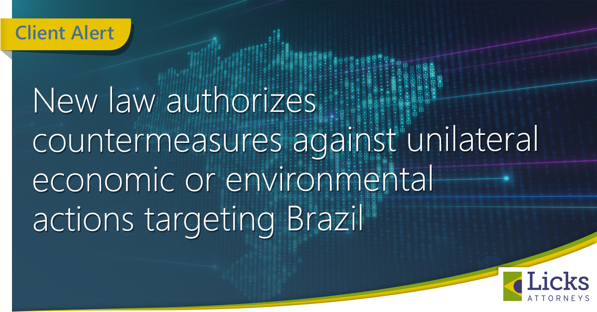 This Monday, Law #15,122, of April 11, 2025, was published in the Federal Register authorizing the proportional countermeasures in response to economic impacts caused by “measures adopted by a country or economic bloc that negatively impact Brazilian international competitiveness.”