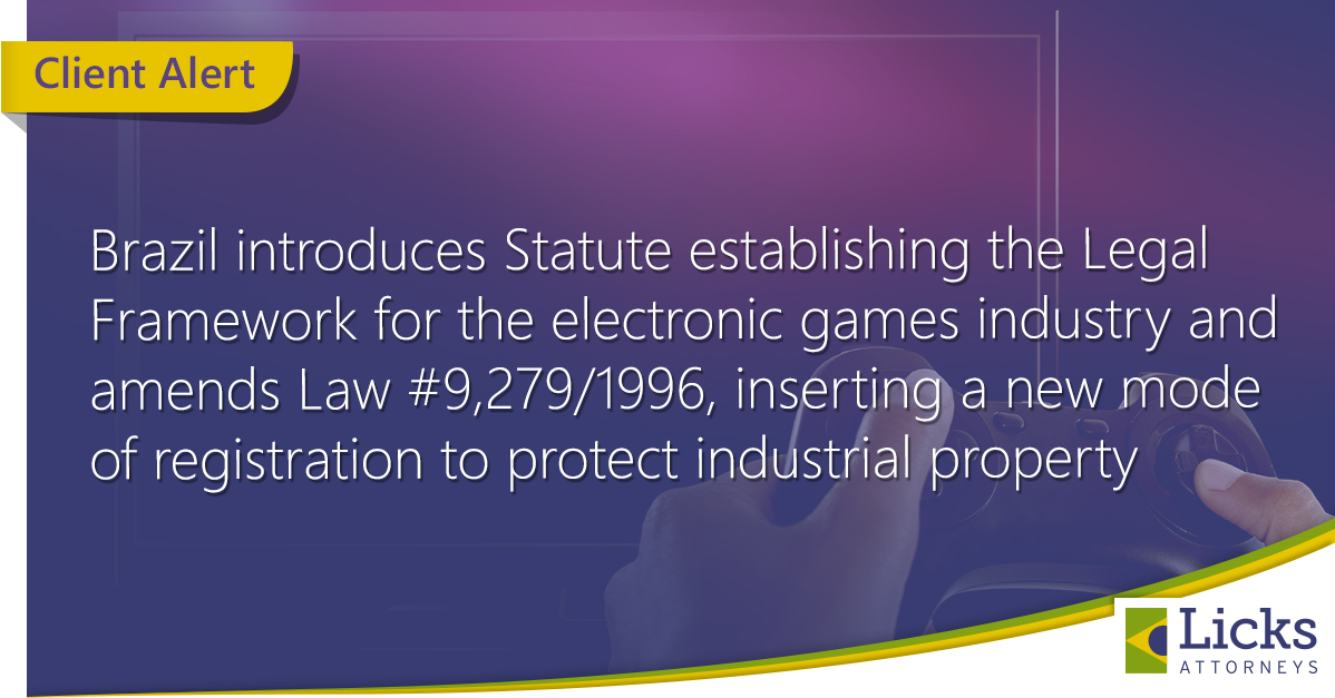 Brazil introduces Statute establishing the Legal Framework for the electronic games industry and amends Law #9,279/1996, inserting a new mode of registration to protect industrial property