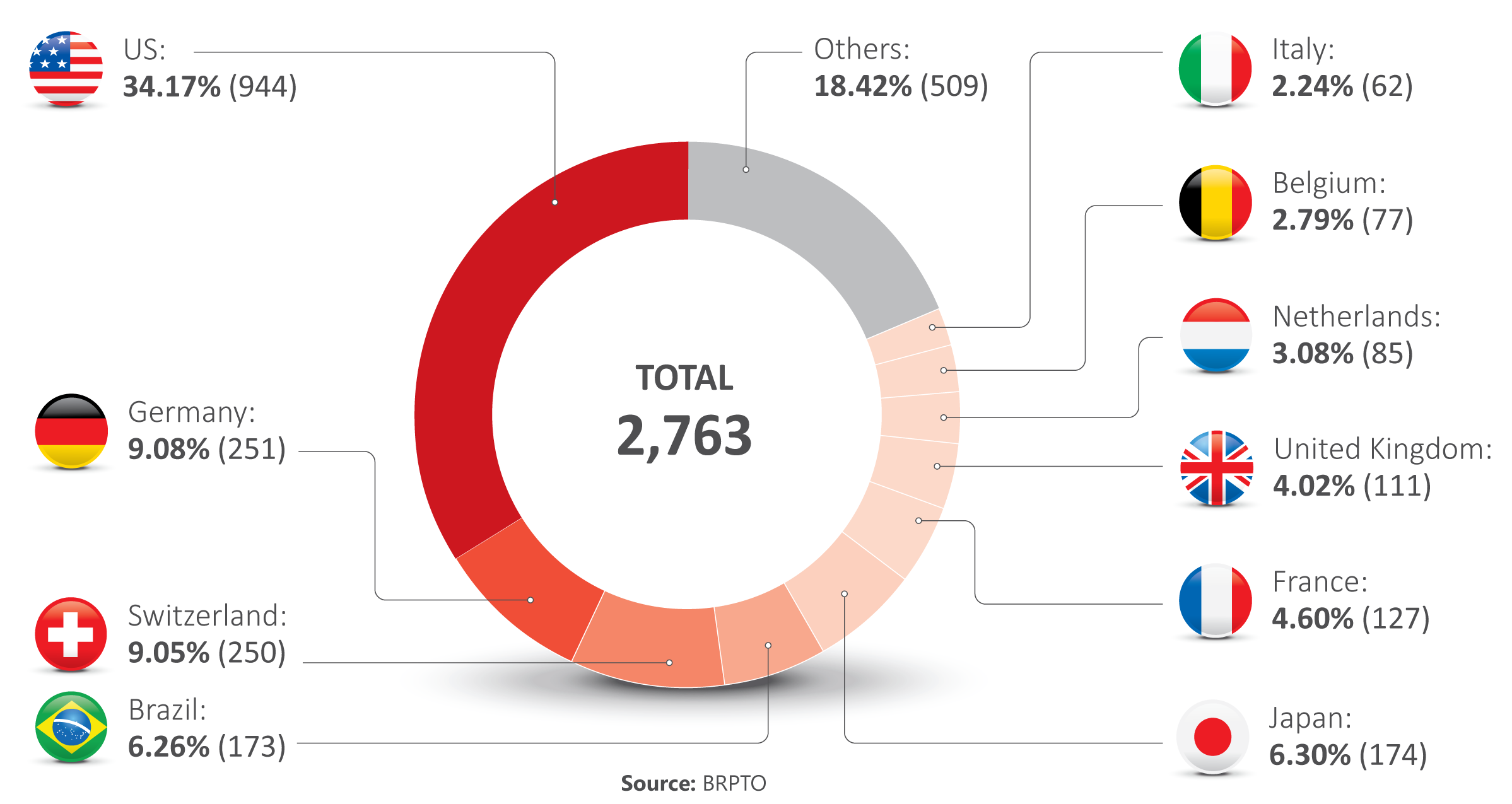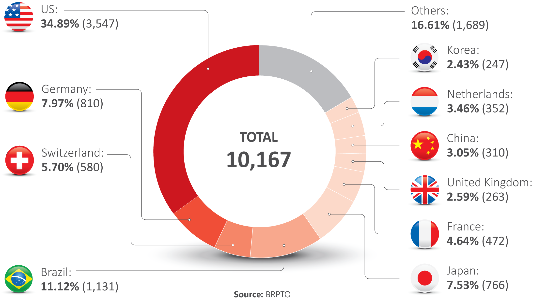 Regularly pending utility patent applications with delays of over ten years, per applicant’s country in the pharmaceutical area (pharmaceuticals and biopharmaceuticals)