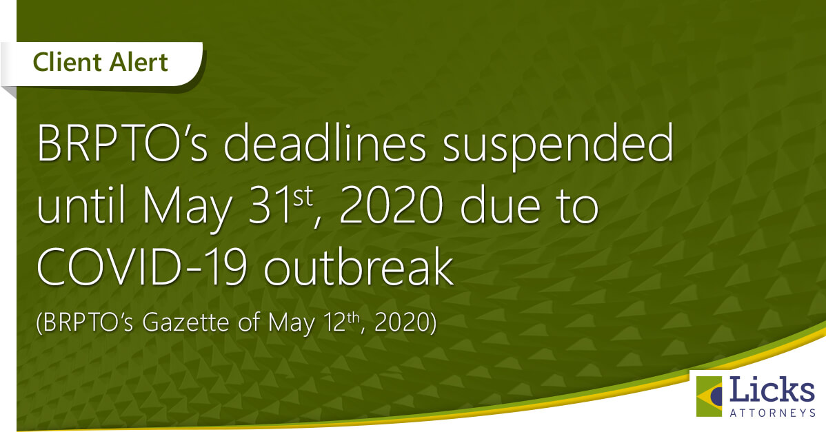 BRPTO’s deadlines suspended until May 31st, 2020 due to COVID-19 outbreak