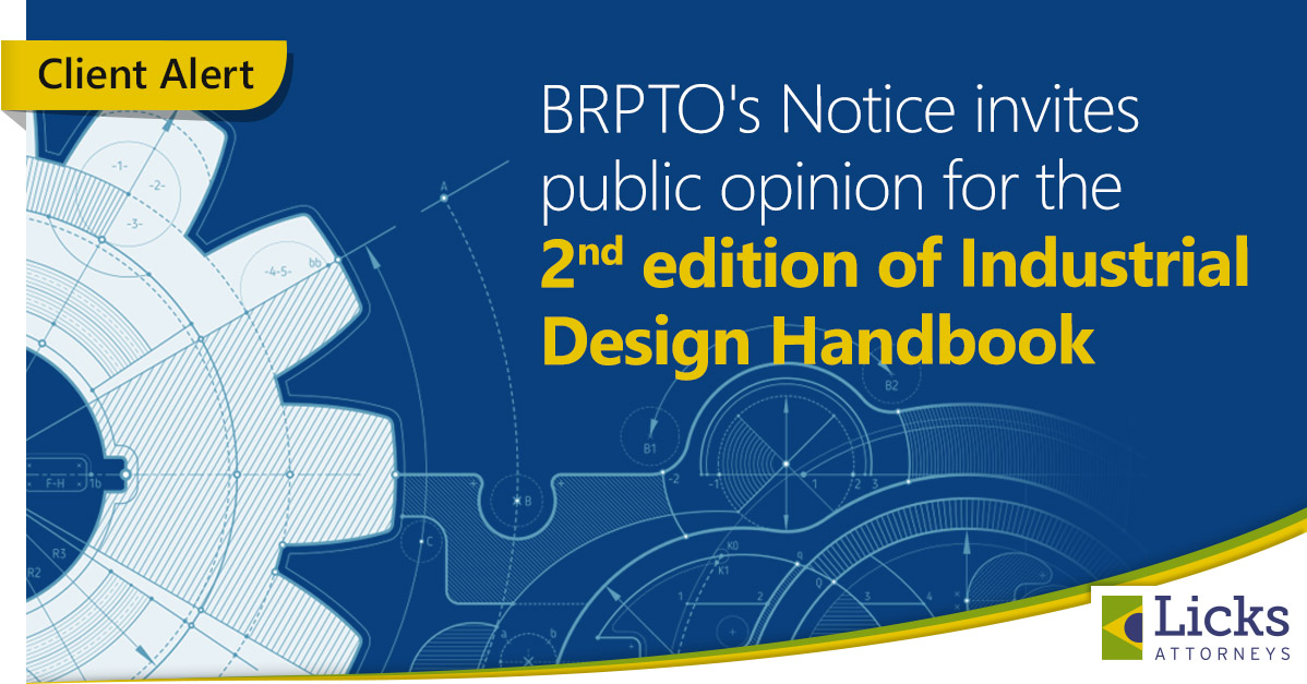 A copy of the second edition of the BRPTO's Industrial Design Handbook under public consultation is available here. For more information on the public consultation, please contact us at industrialdesign@lickslegal.com. We will be glad to assist you.