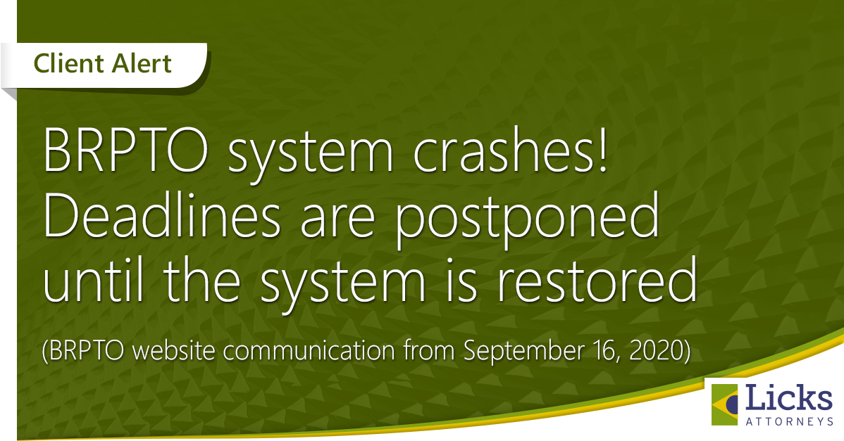 The BRPTO has issued a notice on its website informing users about the problem with the system and announcing that all deadlines will be postponed until regular operation is restored.