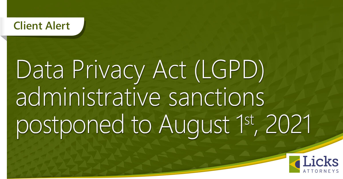Our team is closely monitoring any measures regarding LGPD’s enforceability. For more information regarding this matter, e-mail us at dataprivacy@lickslegal.com.
