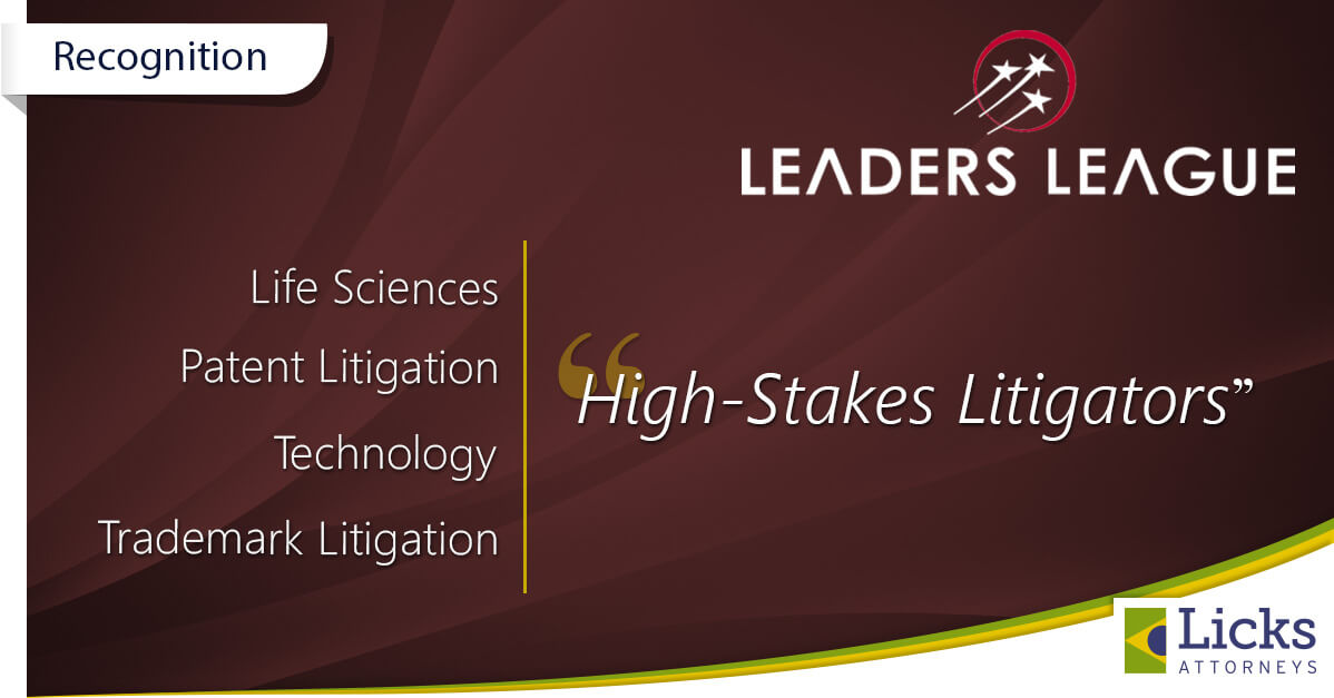 We are very proud to share that Licks Attorneys has been distinguished as a leading law firm in its core practices: Patent Litigation, Life Sciences, Technology and quoted as a “Dominant litigation firm respected for its superior track record representing leading pharmaceutical, medical devices and technology companies in high-stakes IP disputes”. We have also been recognized as excellent for or Trademark Litigation practice. In addition, six of our partners have been individually named: Liliane Roriz, Otto Licks, Carlos Aboim, Eduardo Hallak, Rodrigo Souto Maior and Felipe Mesquita. For more information, click here: http://bit.ly/ll-2019