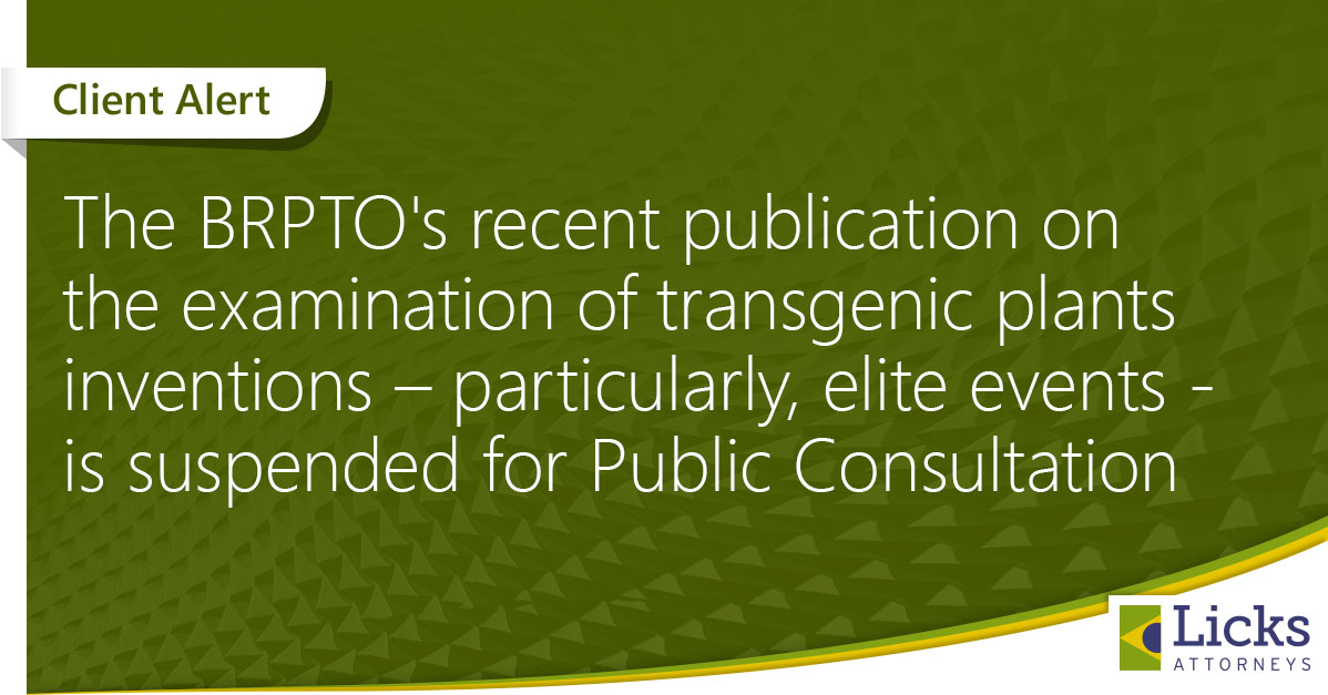 The BRPTO’s recent publication on the examination of transgenic plants inventions – particularly, elite events - is suspended for Public Consultation