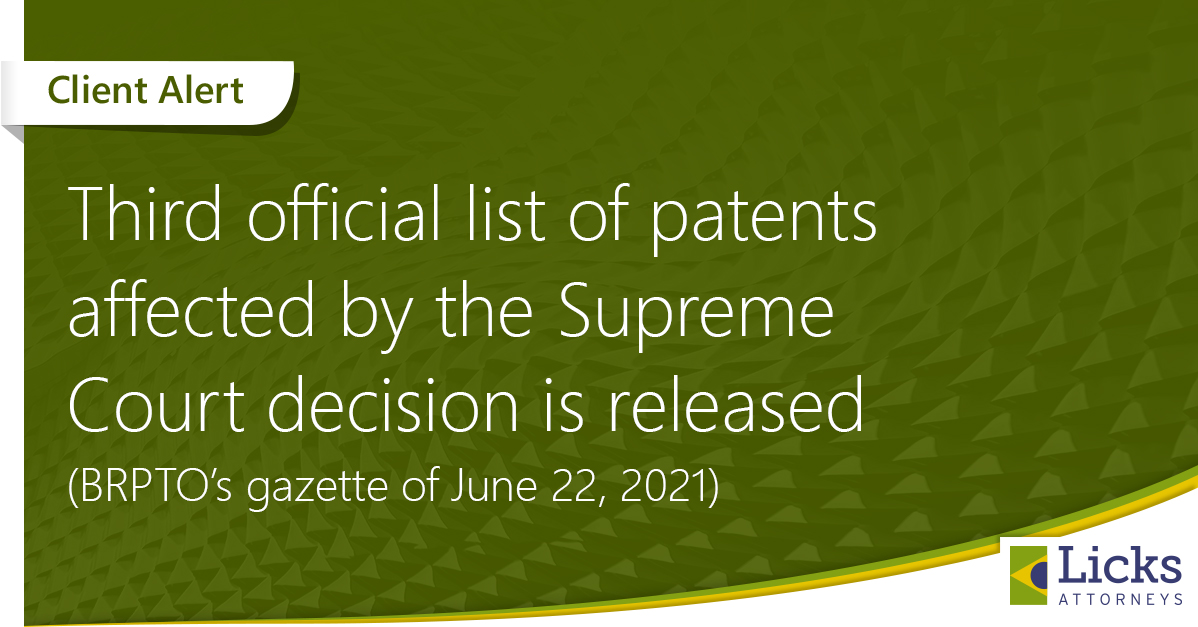 You can download a copy of the BRPTO’s original communication here. For additional information, please contact info@lickslegal.com.