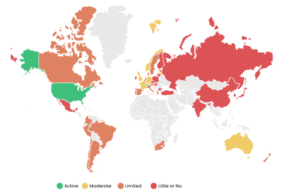 Unfortunately, the result was disappointing. Only two countries were identified with real progress in this regard: Switzerland and the USA. Of the 47 assessed countries, the degrees of progress identified are as follows: