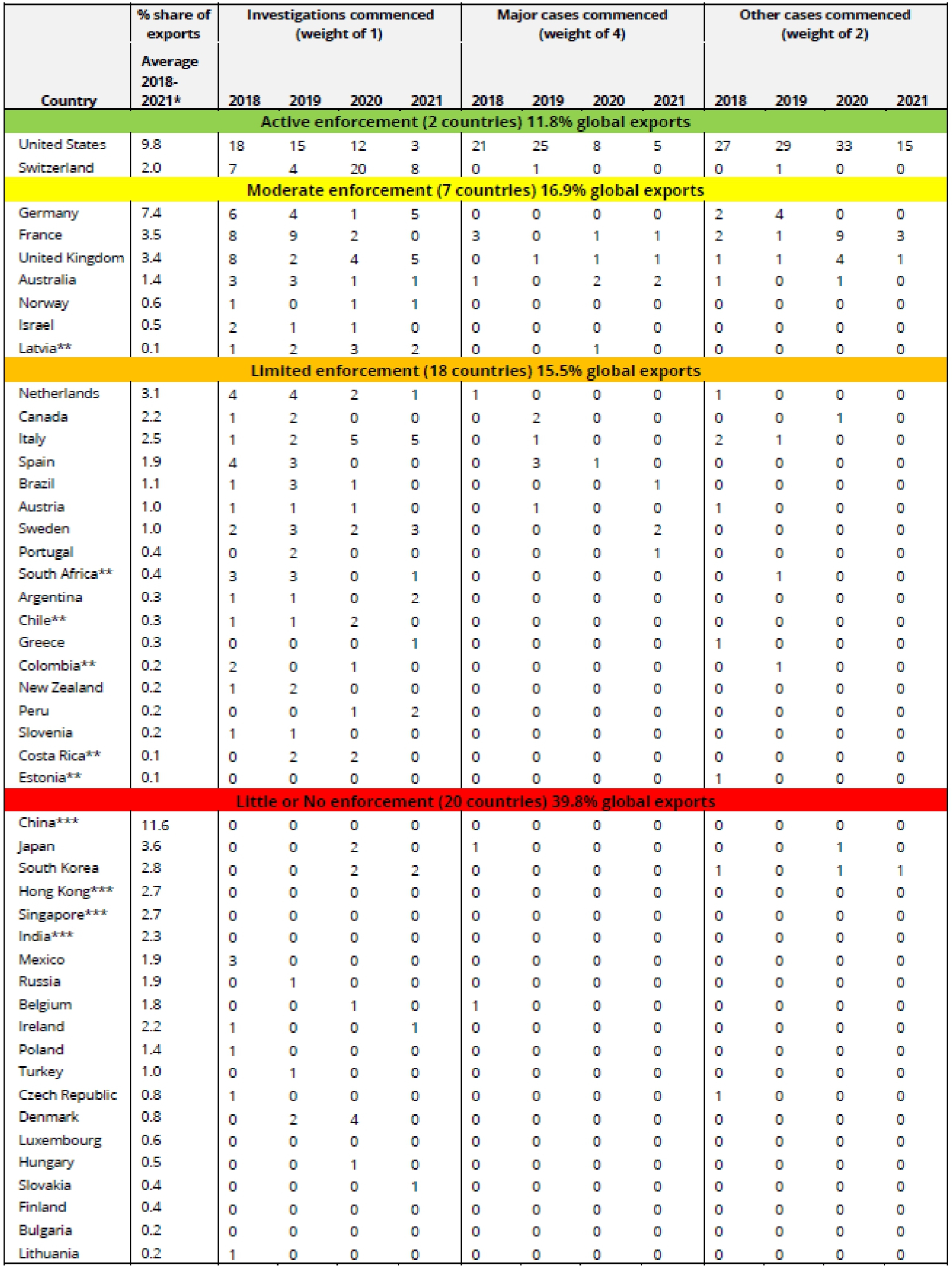 Table 1: INVESTIGATIONS AND CASES (2018-2021)
