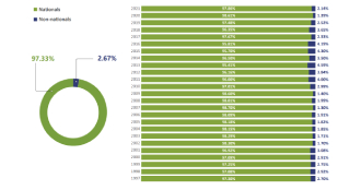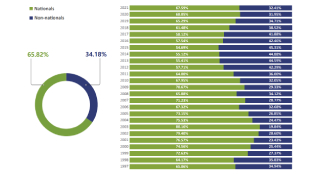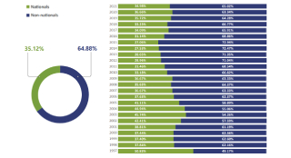 Applications filed from January 1997 to December 2021. Nationals v Non-nationals